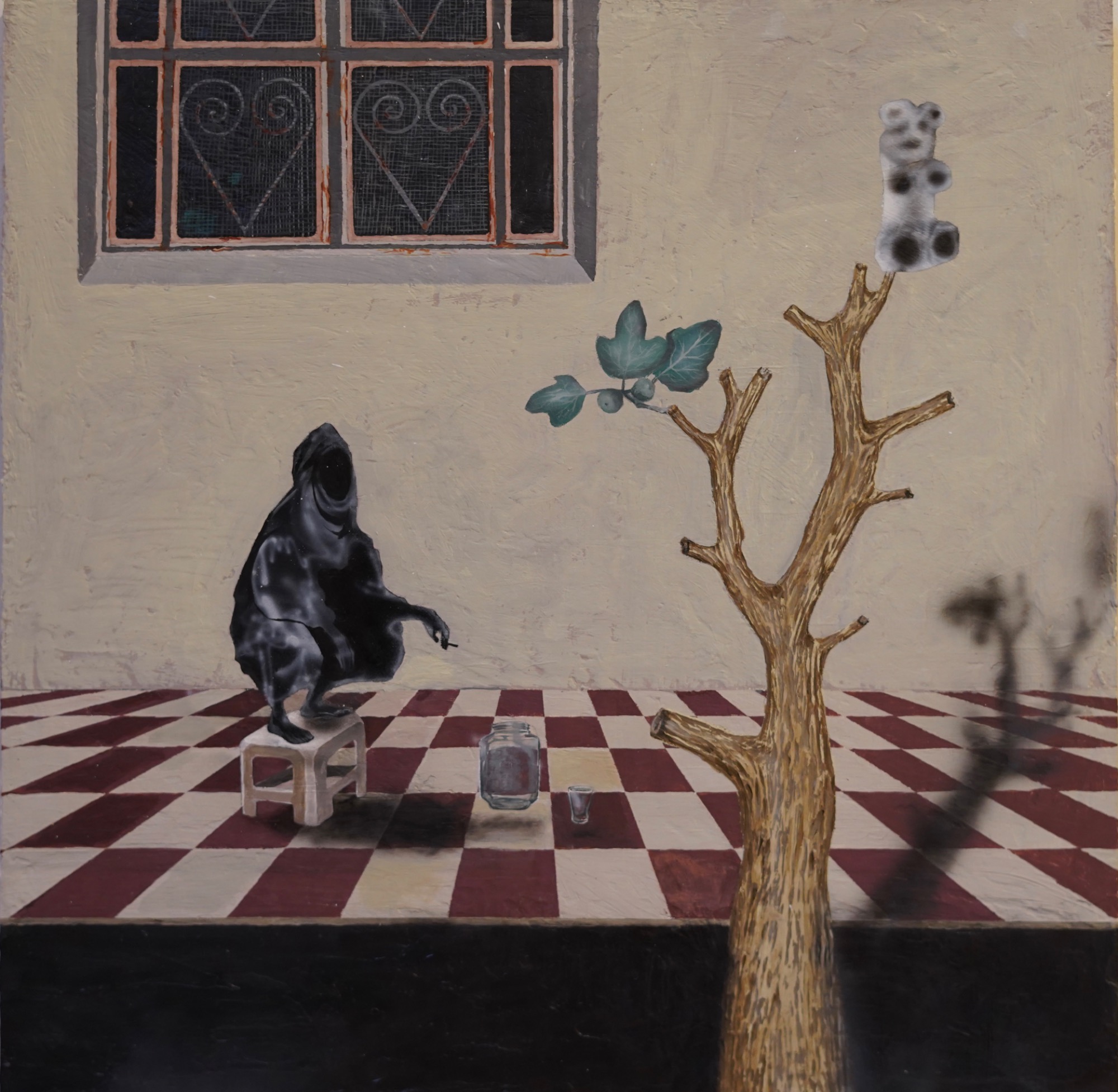Wheibi, geboren in Damaskus, lebt und arbeitet in zwischen Heidelberg und Basel, hat Schauspiel an der Theaterakademie Mannheim studiert. Ihre künstlerische Praxis bewegt sich zwischen Theater, Malerei und Performance und verbindet visuelle, emotionale und körperliche Ausdrucksformen.